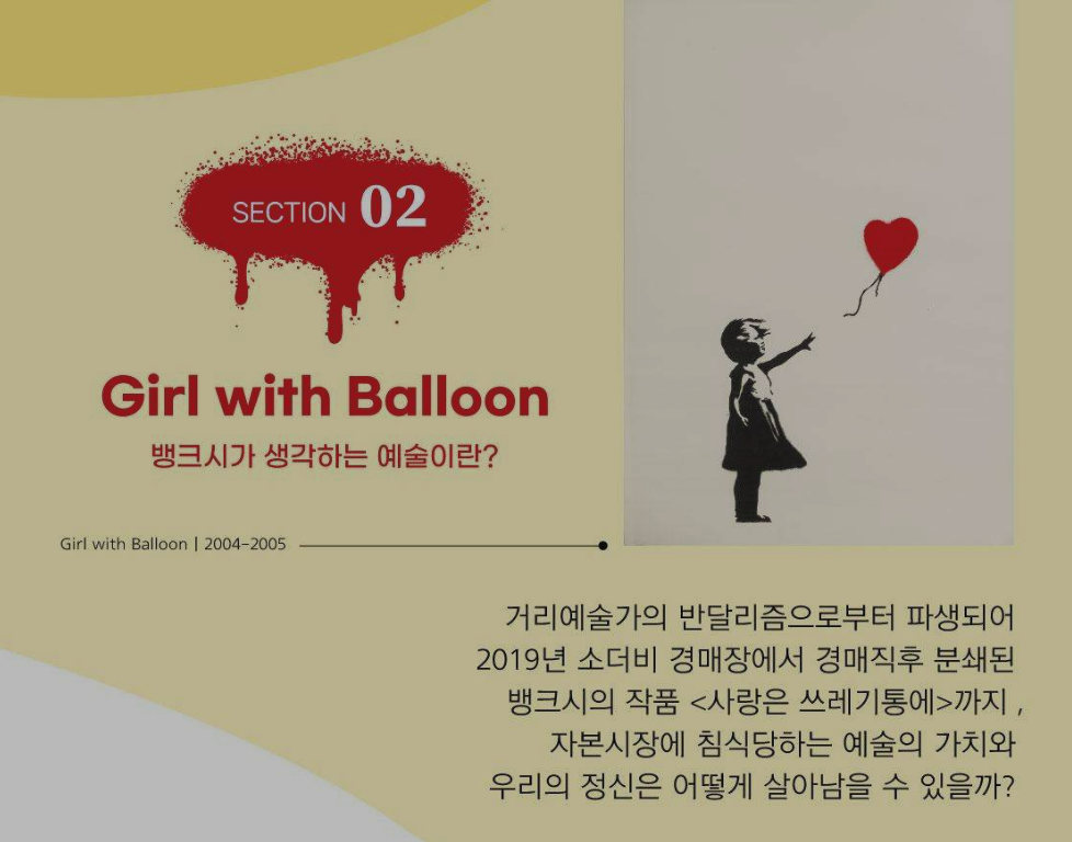 이번 전시회는 뱅크시의 대표작을 '풍선을 든 소녀' 를 비롯해 다양한 예술 작품을 만날 수 있는 기회입니다.
