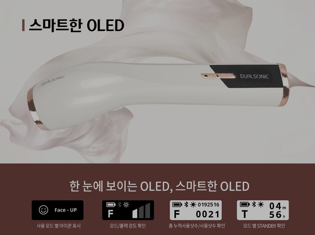 듀얼소닉은 집에서도 간편하게 피부 탄력을 관리할 수 있는 미용기기이고 가장 대표적인 기능은 초음파 에너지를 이용한 피부 탄력 개선입니다.