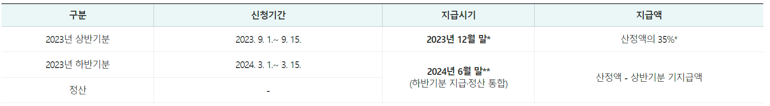 * 상반기분 지급액이 15만 원 미만인 경우 12월 말에 지급하지 아니하고 다음 해 6월에 정산합니다.