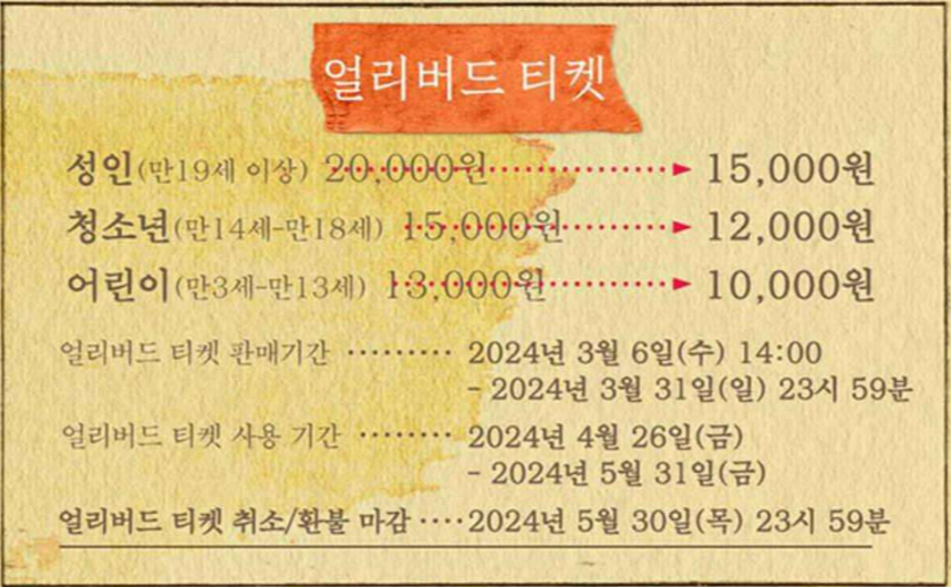 * 얼리버트 티켓 판매기간 : 2024.3.6(수) 14:00~ 3.31(일)